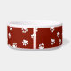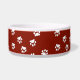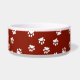 Cette grande cuvette de chien a un arrière - plan rouge avec les empreintes de pattes blancs là-dessus. Grande taille pour de plus grandes variétés de chien. Il tient 40 onces de nourriture et est le matériel en céramique blanc. Il est sûr pour la micro-onde et le lave-vaisselle aussi bien.
