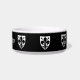 Des boucliers blancs sur le noir avec des symboles Fleur De Lis entourent ce bol de chat pour votre prince ou chat princesse. Ajoutez le nom de votre animal royal. Si vous devez agrandir le texte pour des noms plus courts, vous pouvez le faire lorsque vous "customisez". Cliquez sur le texte, faites défiler vers le bas, cliquez sur le signe "+" ou sur un nombre plus grand dans la zone de police.