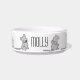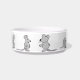Des souris dans différentes poses entourant votre bol de chats avec votre nom de chats au centre.