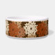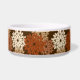 Bol pour animaux de compagnie dans une interprétation moderne d'une impression de kimono floral japonais traditionnel - fleurs stylisées dans des nuances de beige taupe, brun rouille et beige sur un fond brun chocolat foncé