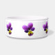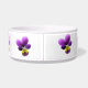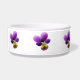 Ce magnifique bol d'animal de compagnie présente une photo très détaillée d'une fleur de sansy sauvage, prise en macro photographie. La fleur est violette avec un centre jaune.