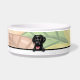 labrador noir mignon qui regarde dans un bol de nourriture ou d'eau.