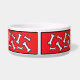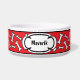Bol drôle d'aliments pour chiens avec un motif des os de chien sur un fond rouge lumineux. Ajoutez le nom de votre chien.