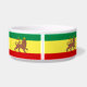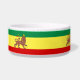 Cette cuvette d'animal familier comporte un thème de reggae de Rasta avec le drapeau de l'Ethiopie de 1897 bandes horizontales se composantes de vert, de jaune et de rouge avec un lion sombre de Judah au centre, utilisant une couronne et tenant une croix.