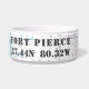 Pour le Chien Nautique de votre famille, ce plat personnalisé montre son côté "naut", avec la ville natale, la latitude et la longitude indiquant le chemin. Celui-ci montre le graphique officiel de la NOAA montrant la région de Fort Pierce Inlet et la latitude et longitude du Théâtre Sunrise historique — tous personnalisables, bien sûr!