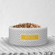 Cuisine pour chien ou bol d'eau sur mesure avec un motif d'impression chevron chic et moderne. Personnalisez-le avec le nom de votre animal dans un cadre rectangle. Cliquez sur Customiser pour modifier la police de texte et les couleurs pour créer un design unique et unique !