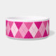 Motif de style argyle dans une palette de couleurs roses. Il y a également une bannière en forme d'os de chien noir avec une zone de texte personnalisable pour le nom de l'animal.