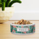 Pour votre animal de compagnie insulaire, ce mignon bol de style tropical personnalisé pour chiens ou chats est doté d'un motif de feuilles de bananes vertes sur un arrière - plan corallien dynamique avec des rayures haut et bas. Personnalisez avec le nom de votre animal de compagnie.