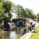 art design of a narrowboat approaching a lock and a man fishing. Canal boats, known in the UK as narrowboats, were originally used to transport goods around the country. They are now used mainly for leisure and attract people from all over the world to enjoy our rural countryside. These boats look very pretty with their brightly colored cabins, traditionally blue, red or green. Flowers and castle designs adorn the more traditional boats.