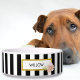 Offrez à votre animal de compagnie un lit à motifs rayés en or, noir et blanc, doté d'une plaque d'identité bordée d'or et d'un rose de pêche d'été dans un coin. Vous pouvez customiser le nom et les bandes dans la couleur de votre choix. Conçu par Thisisnotme©