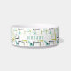 Ce bol pour animaux de compagnie moderne du milieu du siècle est doté de carrés abstraits, d'étoiles et d'un boomerang dans les couleurs bleu aqua, jaune, vert avocat et le nom de votre animal de compagnie dans une police décontractée bleu aqua. Ajoutez un élément amusant à l'heure du repas de votre animal de compagnie !
