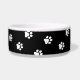 This pet bowl is shown in a cute dog paws print.