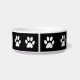 Petite cuvette de chien d'empreintes de pattes avec les pattes blanches et l'arrière - plan noir et un endroit vous pouvez ajouter vos chiens nommés faisant à ceci une conception chique de cuvette d'animal familier. Employez le vôtre pour un plat de l'eau, le plat de nourriture, ou le fourre-tout pour tous vos festins de chienchien.