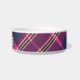 Add this elegant dog bowl to your pet's belongings for a touch of tradition. The bowl features a Scottish-inspired tartan design in stylish navy blue, pink and yellow. Personalize with your dog's name for the finishing touch.
