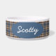 Plaid brun et bleu mignon avec une plaque d'identification bleue. Customisez-la avec votre nom d'animal familier.