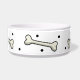 Grande cuvette en céramique blanche semblante de chien avec les graphiques lunatiques des os de bande dessinée et du pois noir. Customisez pour ajouter n'importe quel texte que vous voulez. Grand plat d'animal familier qui fait un cadeau gentil aussi.