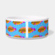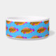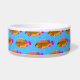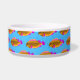 Ce bol de chien amusant présente des poissons tropicaux orange vif et rose sur un arrière - plan d'art linéaire et un beau bleu océanique.