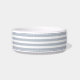 Pour les animaux de compagnie les plus élégants, ce mignon bol personnalisé pour chiens ou chats présente un motif rayé gris et blanc brouillard avec des accents rayés bleu marine en haut et en bas. Personnalisez ce design cool avec le nom de votre animal de compagnie en lettres modernes.