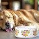 Un Python albino jaune se déplace autour de roses roses et pêche dans un arrière-plan turquoise.