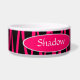 Donnez à votre animal familier un bord moderne avec ce plat frais de nourriture barré par zèbre de noir et de roses indien ! Choyez les caractéristiques de plat un motif de rayure de zèbre de noir et de roses indien tout autour avec un secteur ovale de roses indien avec l'équilibre blanc de chaque côté. À l'intérieur de chaque ovale est le texte dans la police blanche à customiser avec votre nom d'animaux familiers.