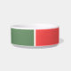 Minimalist design with red and green sides, divided by a black line at 45 degrees. Coral red, almost black and pine green.