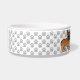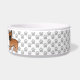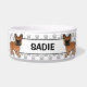 Illustration originale de Destei d'une jolie robe rouge couleur French Bulldog race dog. Il y a aussi une zone de texte personnalisable pour un nom. L'arrière - plan a un motif d'empreintes de pattes de chien gris.