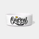 Un bol de compagnie élégant avec le mot "reine" élégamment écrit en noir, orné d'une petite couronne dorée.