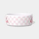 Créez votre propre script de typographie rose foncé personnalisé, élégant et élégant, rétro cool chic design géométrique tendance rose clair à damiers chèques arrière - plan motif, amusant, monogrammed, céramique, chat kitten kitty chien chien chien chien bol de nourriture. Entrez simplement le nom de votre animal / votre texte, pour customiser. Idéal pour l'anniversaire, les fêtes, les fêtes, les nouvelles années, et plus, pour les propriétaires de chat / chien, les amis, et la famille.
