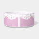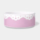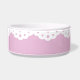 La jolie conception de dentelle d'oeillet équilibre le dessus de cette cuvette assez rose et blanche d'animal familier. Personnalisez avec le nom de votre précieux.