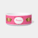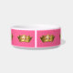 Joli plat d'aliment pour animaux familiers/eau fait dans en céramique blanc, avec une bande rose, autour de la cuvette et des graphiques des couronnes royales goldtone. Un or décoratif et un secteur blanc des textes, sur l'avant a le texte rose prêt à personnaliser pour votre princesse dans la résidence.
