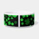 Cette cuvette d'animal familier comporte un shamrock et une conception de trèfle.