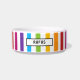 Bandes arc-en-ciel modernes cuvette personnalisée. Offrez à votre animal de compagnie un bol personnalisé à motifs rayés de couleur arc-en-ciel. Vous pouvez customiser la couleur et la plaque d'identification de l'arrière - plan avec une couleur de votre choix. Conçu par Thisisnotme©