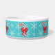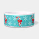 Illustration festive et mignonne de dessin animé rouge et blanc des sucres de canne de Noël avec de beaux arcs rouges. La couleur arrière - plan est bleue avec un motif léger de flocon de neige.