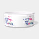 Ce bol pour chien avec un graphisme amusant et mignon "Let's get Tropical" avec des flamants roses est parfait pour votre animal de compagnie. Conçu par Inge Lewis. Cadeaux idéaux pour votre famille, vos amis ou vos invités. Trouvez d'autres articles assortis dans la boutique ingeinc.com.