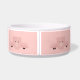 Un bol personnalisé avec un dessin du visage d'un cochon rose mignon. Levé par ses sabots noirs et qui se penchent sur vous. Dessin mignon et fantaisiste. Placez-vous sur un arrière - plan rose avec quelques coeurs défraîchi ici et là.