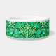 Boule d'animaux de compagnie dans un vintage William Morris motif de jacinthes, tulipes et feuilles, dans les tons vert émeraude et jade, accentué d'aqua et blanc, sur un arrière - plan vert de forêt profonde