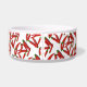 Hot Red And Green Chili Pepper Motif Pet Pet Pet Water Bowl à ajouter à votre collection d'accessoires animaux. Un cadeau cool / idée de cadeau pour tous ceux qui aiment le design personnalisé des articles uniques, des vibrations positives, de la nourriture, des légumes, des choses épicées, de l'ambiance organique, des plantes. Changez la couleur arrière - plan pour convenir à votre goût, style et besoins.