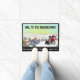 Een deurmat met een grappige cartoon over mensen die een sneeuwblazer aanbidden. Origineel kunstwerk van DB Cartoons.