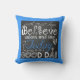 Onze inspirerend kussen van de Goede Dag kenmerkt een tekstontwerp gebruikend diverse doopvonten wit op een zwarte schaakbord kijken achtergrond met een pop blauw voor kleur met een blauwe passende grens! De tekst luidt "geloof...vertrouwen..Ik hoop dat u gelooft, wakker wordt en zegt dat vandaag een GOEDE DAG wordt."