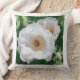 Een heldere witte pioen op het kussen van de worp.
