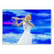 Meisje dat flute speelt met digitale kunst in de oceaan en de lucht