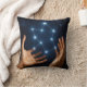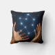 Gloeiende sterren vormen een geometrische vorm tegen een sterrenhemel, zachtjes afgedekt door een paar handen