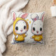 Wit worp kussen met zeer schattig ontwerp van twee vrolijke konijntje.
