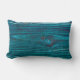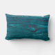 Het abstracte patroon van strepen en vormen op dit lumbale kussen is gemaakt van een originele foto van ZoeSPEAK van hout. In deze tinten aquablauw met stukjes rood, horizontaal lopend, lijkt het een beetje op een profiel van water, kabbelend bovenop en vlak aan de onderkant, met mysterieuze vormen onder het oppervlak.
