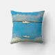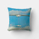 Dit werpen kussen shows sneakers opknoping over een draad met een blauw lucht en wolken.