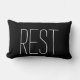 Eén woord: rust Sierkussennen. Zwarte en witte kussens met het eenvoudige woord 'rust' aan beide zijden. Zwart met witte letters aan de ene kant, wit met zwarte letters aan de andere kant. Bekijk meer in onze winkel, Quote Life. Link hieronder: