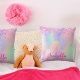 Een trendy regenboogkleurige achtergrond met eenhoorn- en regenboogpastelkleuren in blozend roze, paarse, mintgroen. Versierd met confetti en een regenboogkleurige eenhoorn. Personaliseer en voeg een naam toe, geschreven met een modern handgeschreven stijlscript. Hete roze gekleurde letters.