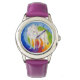 Een eenhoorn en een regenboog op een polshorloge voor meisjes.