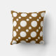 Een patroon van grote en kleine stippen zit op dit bruine werpkussen.