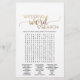 Dit simpele goudkalligrafie-trouwwoordzoekspel is perfect voor een chic vrijgezellenfeest. Aan de voorkant van de spelkaart staat "hij zei dat ze zei", wat een leuke quiz is over de bruid en bruidegom. Op de achterkant van de kaart staat een woord met huwelijkswoorden en zinnen. Het klassieke romantische ontwerp is voorzien van faux gouden folie-typografie en een prachtig gouden hart. Pas de spelkaart aan met de bruidsnaam en de datum van het vrijgezellenfeest. Opmerking: dit ontwerp is niet voorzien van echte gouden folie. Het is een afbeelding van hoge kwaliteit die gemaakt is om op gouden folie te lijken.